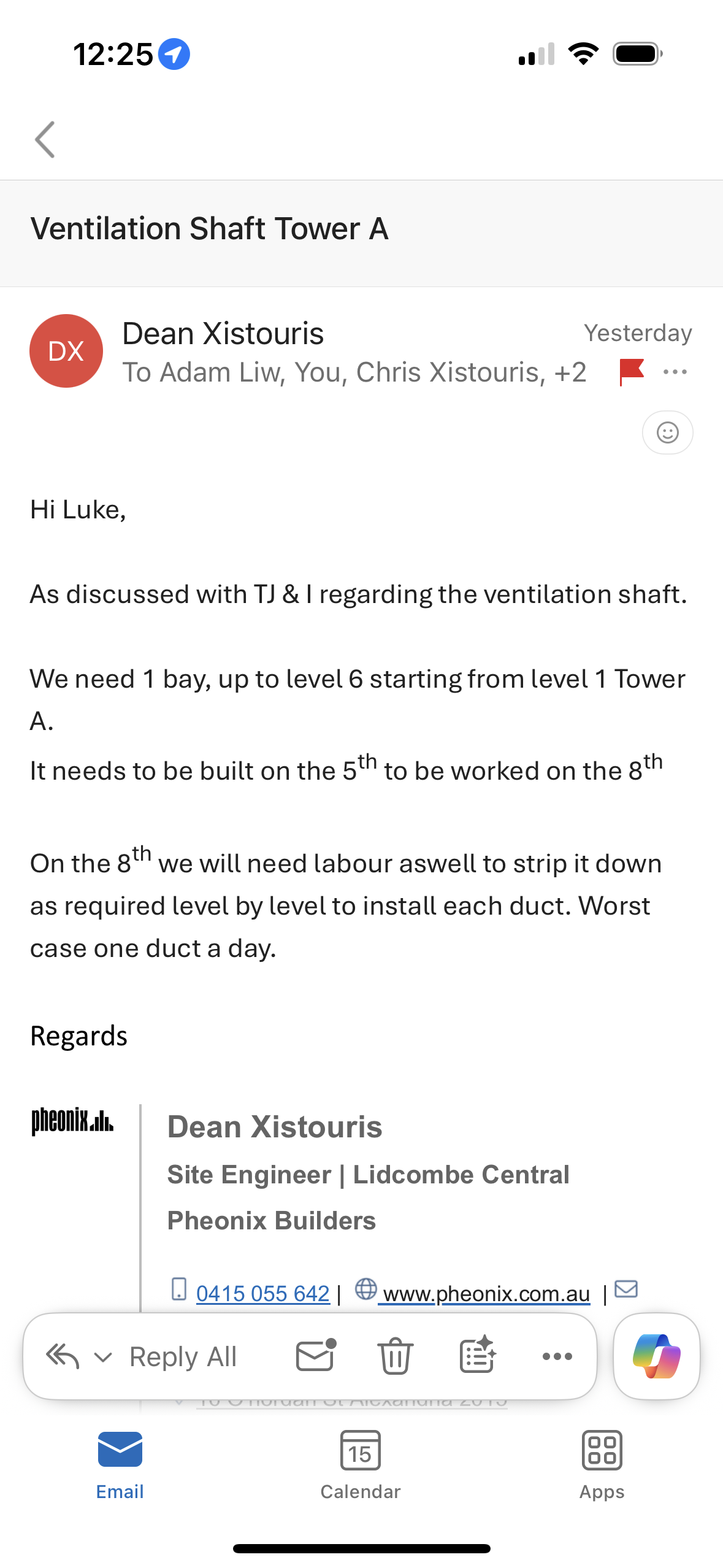 1 x bay to be built in a ventilation shaft from L1-L6 to allow ducts to be installed then dismantled in stages so that works can be completed.
